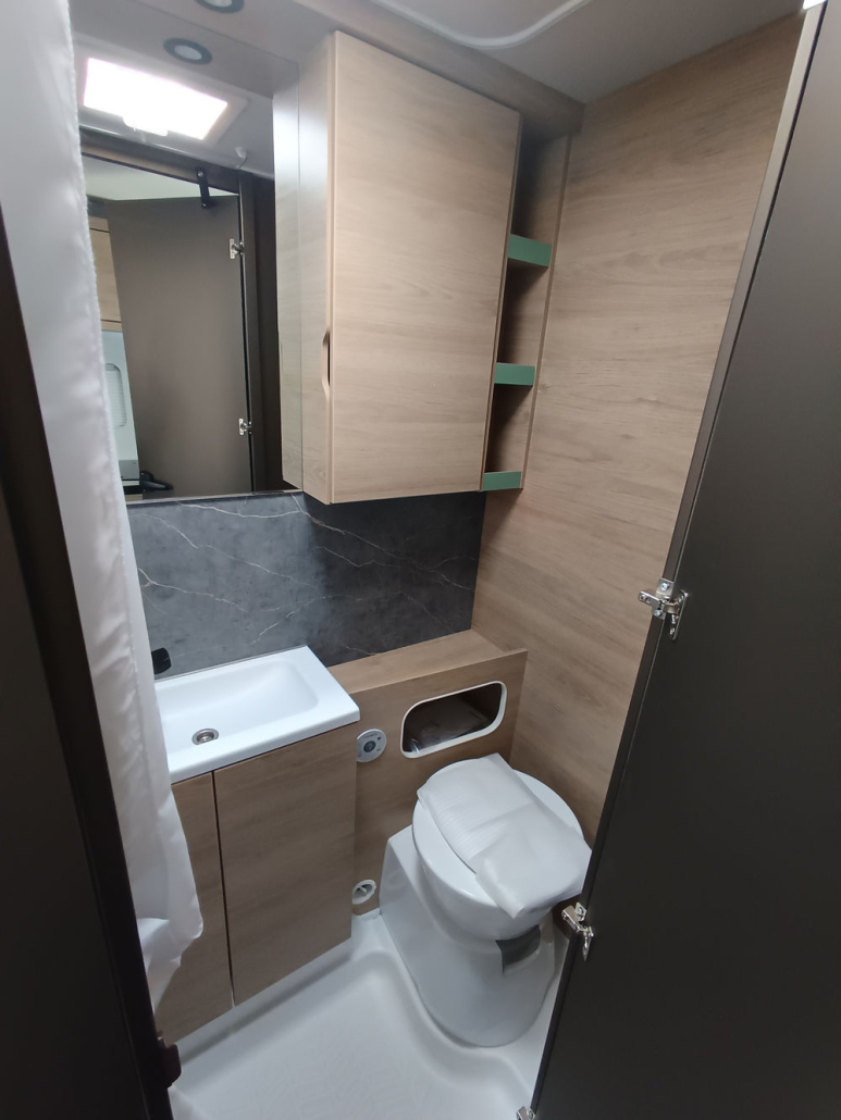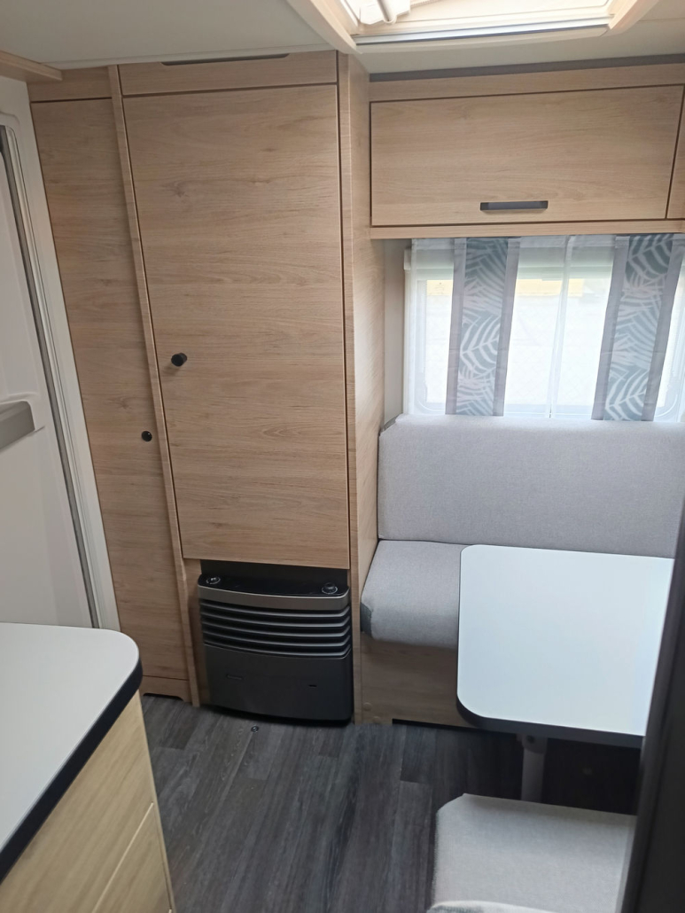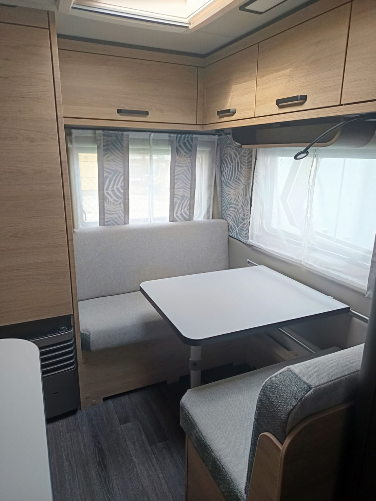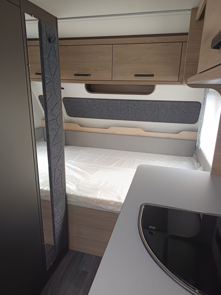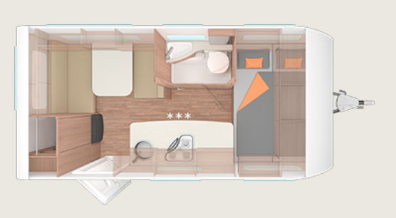 Felszereltsége: Truma körfűtés, 5 l-es Truma Therme elektromos vízmelegítő, 3 égőfejes főzőlap, hűtőszekrény, 45 l-es víztartály, 25 l-es mobil szennyvíztartály, vízszűrő berendezés, zuhanyzós fürdőszoba beépített WC-vel, kézmosó tükörrel, kombinált roló az ablakokon, panoráma tetőablak, szúnyoghálós bejárati ajtó, 12 V-os LED-es belső világítás, LED elősátorlámpa, pótféklámpa, 13 pólusú csatlakozó a vonójárműhöz, stabilizátoros vonófej, tekerő, fellépő. („Smart” és „Advanced” csomagok)