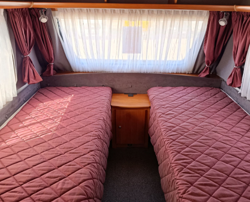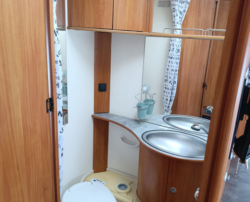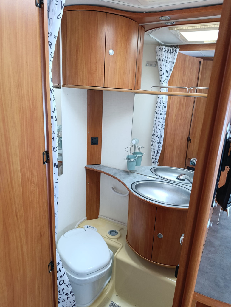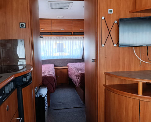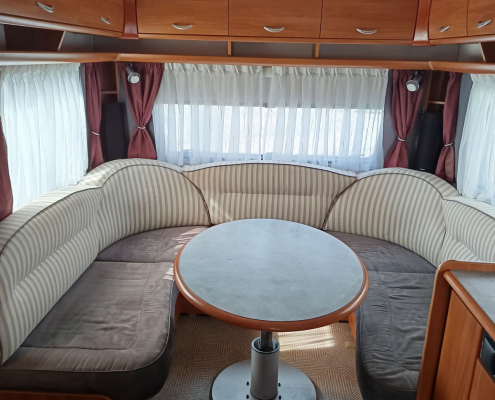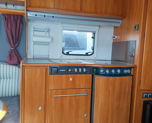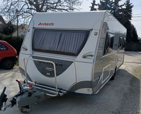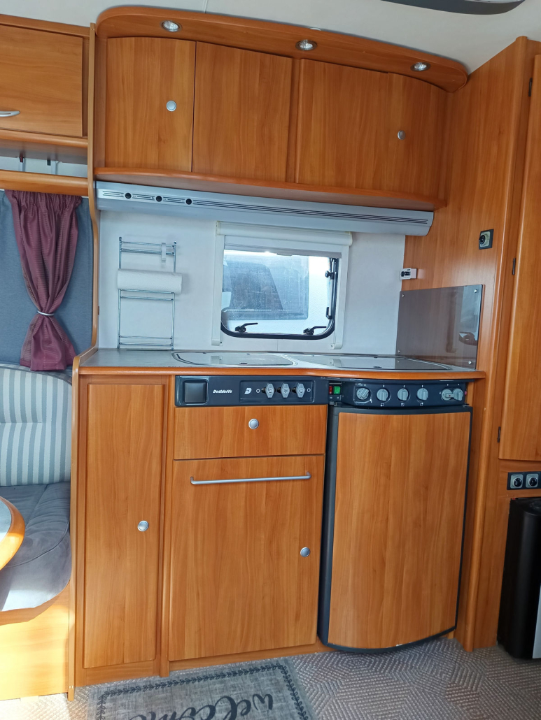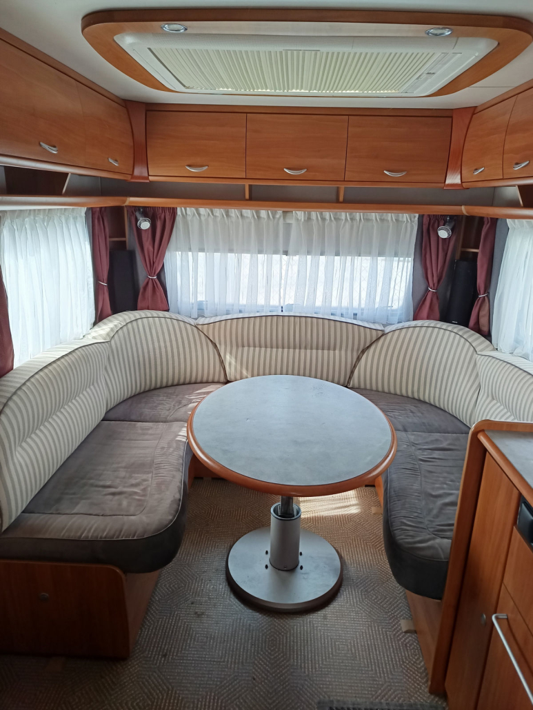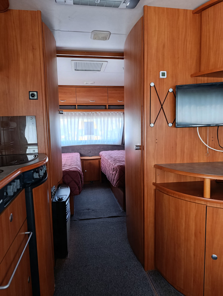 Felszereltsége: WS stabilizátoros vonófej, Truma gázfűtés, hideg-melegvíz rendszer, 3 rózsás gáztűzhely, mosogató, mikróhullámú sütő, Dometic 3 üzemű hűtőszekrény, 50 l-es víztartály, beépített split klíma, zuhanyzós fürdőszoba, beépített Thetford WC , nagyméretű gardróbszekrény, panoráma tetőablak, 11 kg-os gázpalack, szervízajtó, külső 220V + antenna csatlakozás, betápkábel, tekerő, fellépő, előtető