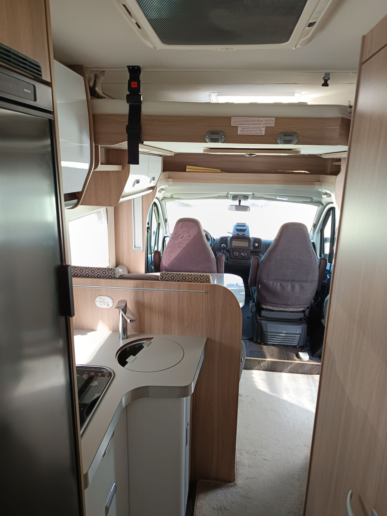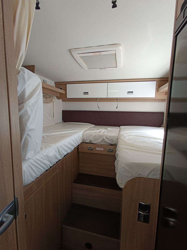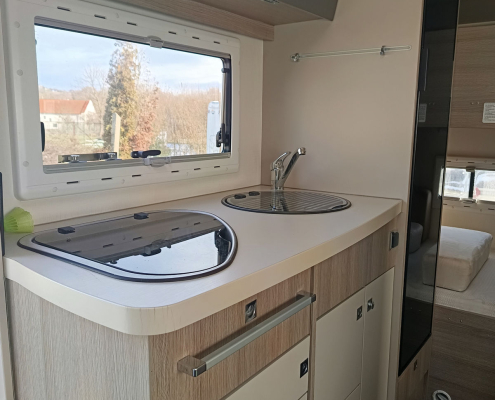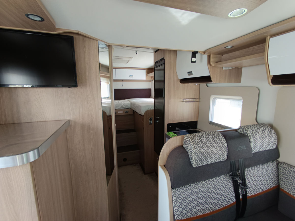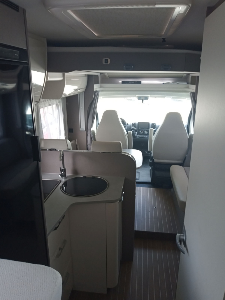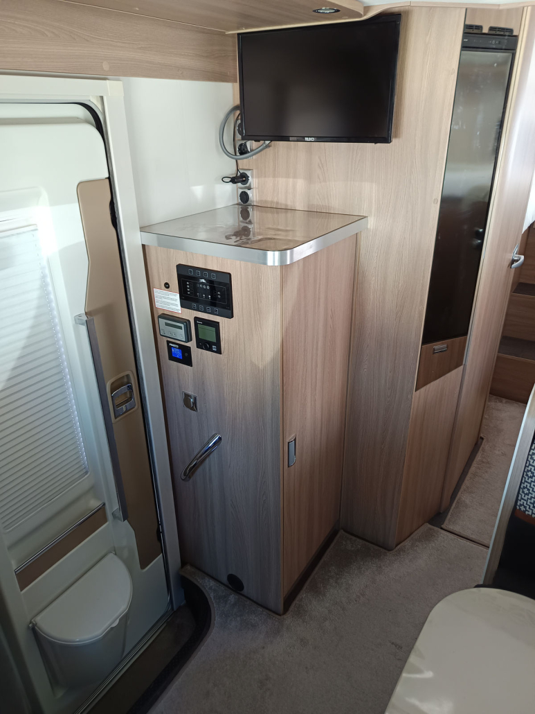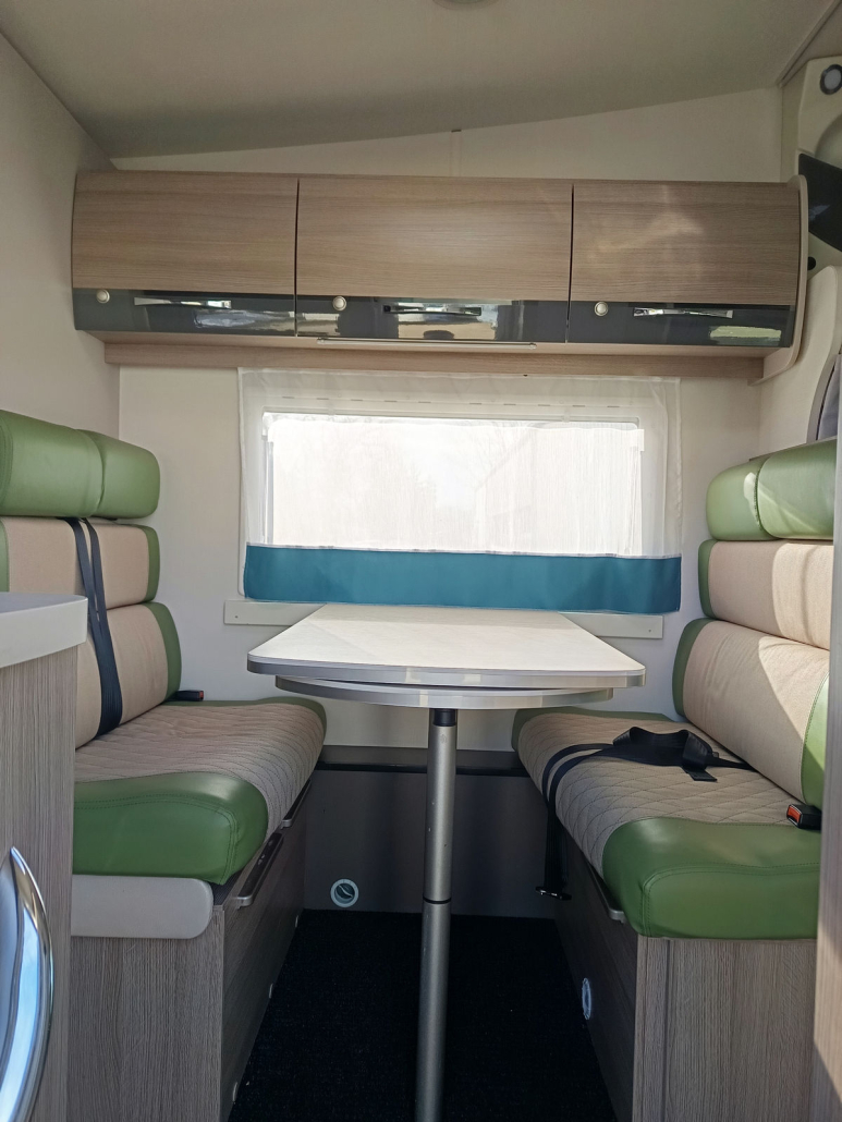Felszereltsége: Thule napárnyékoló, Szolár rendszer, 2 munkaakkumulátorral, 1500 W inverter, 12V + USB csatlakozók, Dometic tetőklíma, Truma Combi iNet fűtés + melegvízrendszer, 3 rózsás gáztűzhely + mosogató, 3 üzemű Thetford hűtőszekrény, mosdó + zuhanyfülke, beépített Thetford WC, víztartály, szennyvíztartály, XZENT 2 din-es fejegység, Teleco TV + parabola antenna, 1 db 11 kg-os gázpalack, DuoControll, sötétítő + szúnyogháló az ablakokon, szúnyoghálós bejárati ajtó, REMIS sötétítő az utasfülkében, motoros mozgatású felső ágy, pótkerék, betáp kábel, 2t-s vonóhorog, légrugó, Fiamma 4-es kerékpártartó