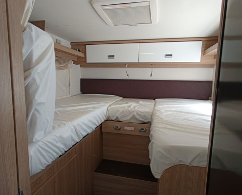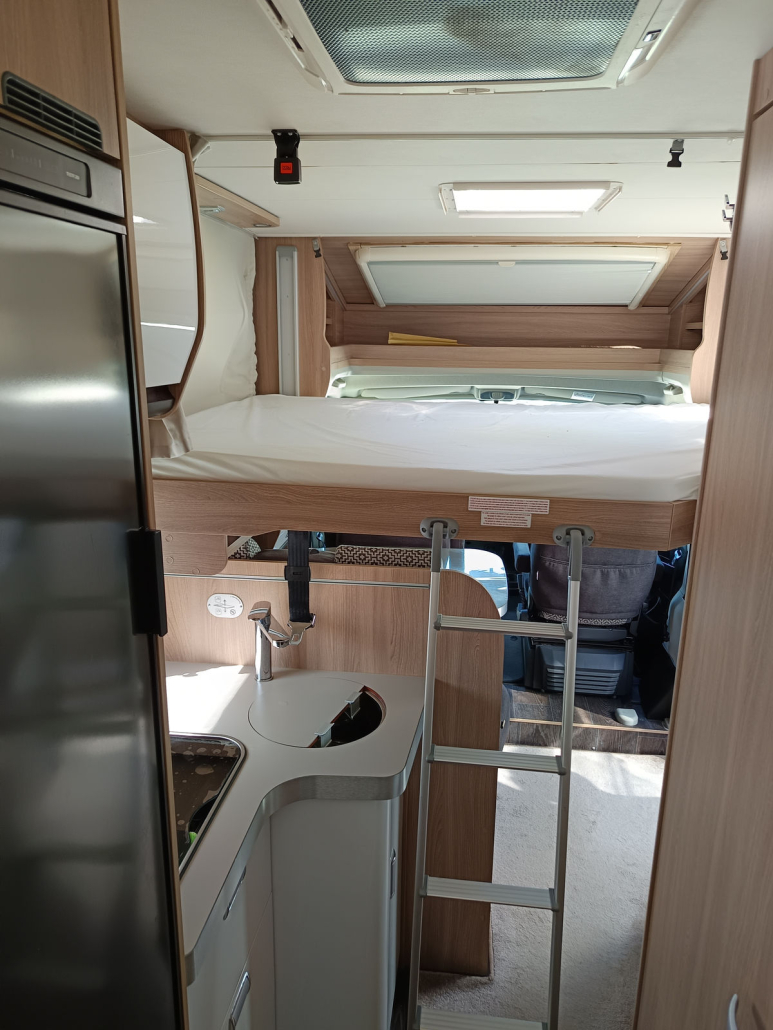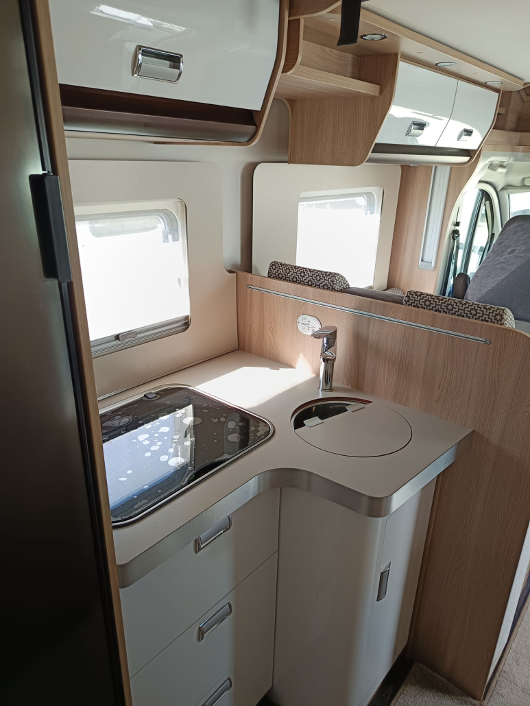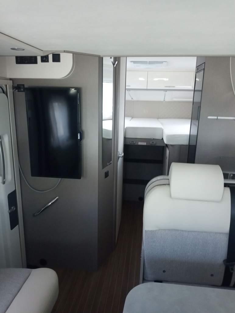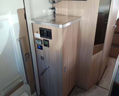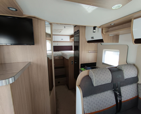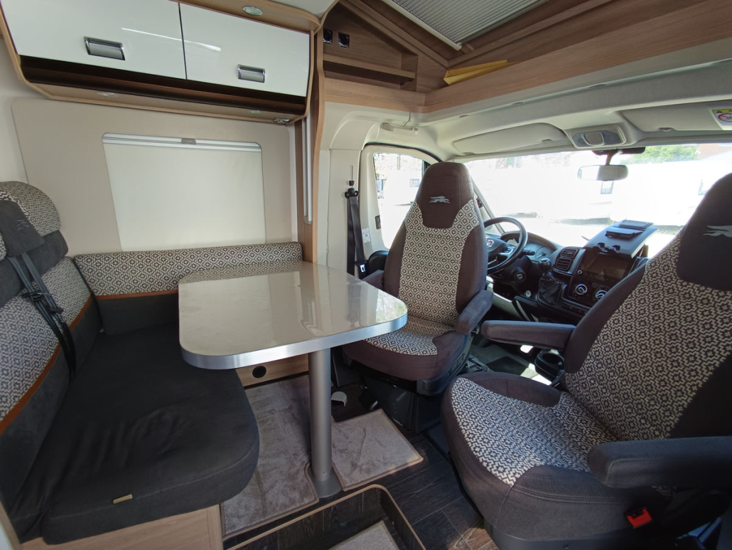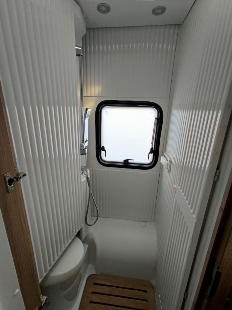 Felszereltsége: Thule napárnyékoló, Szolár rendszer, 2 munkaakkumulátorral, 1500 W inverter, 12V + USB csatlakozók, Dometic tetőklíma, Truma Combi iNet fűtés + melegvízrendszer, 3 rózsás gáztűzhely + mosogató, 3 üzemű Thetford hűtőszekrény, mosdó + zuhanyfülke, beépített Thetford WC, víztartály, szennyvíztartály, XZENT 2 din-es fejegység, Teleco TV + parabola antenna, 1 db 11 kg-os gázpalack, DuoControll, sötétítő + szúnyogháló az ablakokon, szúnyoghálós bejárati ajtó, REMIS sötétítő az utasfülkében, motoros mozgatású felső ágy, pótkerék, betáp kábel, 2t-s vonóhorog, légrugó, Fiamma 4-es kerékpártartó