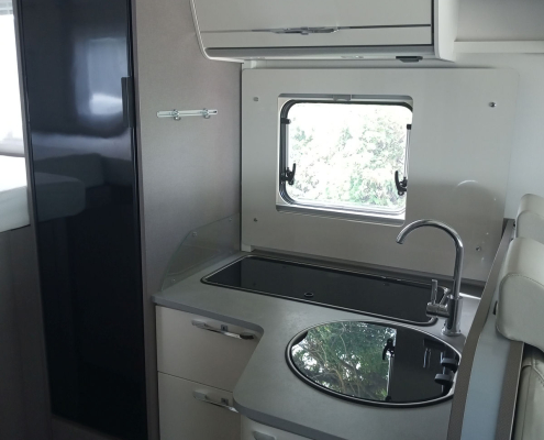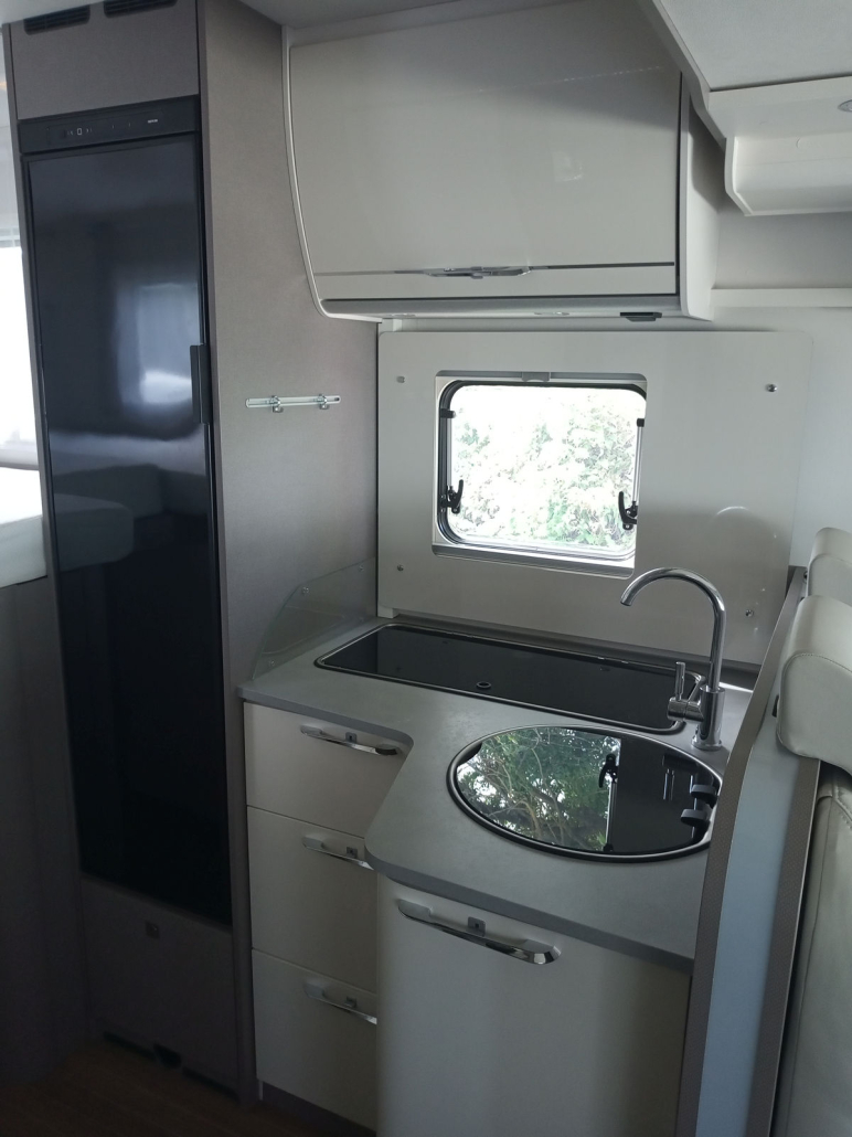 Felszereltsége: automata váltó, Thule napárnyékoló, Webasto tetőklíma, Truma Combi fűtés + melegvízrendszer, 2 rózsás gáztűzhely + mosogató, 3 üzemű Thetford hűtőszekrény, mosdó + zuhanyfülke, beépített Thetford WC, víztartály, szennyvíztartály, külső zuhany, 2 db alu 11 kg-os gázpalack, sötétítő + szúnyogháló az ablakokon, Remifront sötétítő a vezetőfülkében, USB csatlakozók, gyári kempingszett (2 szék + asztal), elektromos fellépő, alufelni, vonóhorog, LED-es fényszórók, 2 dines multimédiás rendszer, Thule 2-es kerékpártartó, panoráma tetőablak, szúnyogháló az oldalsó tolóajtón