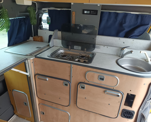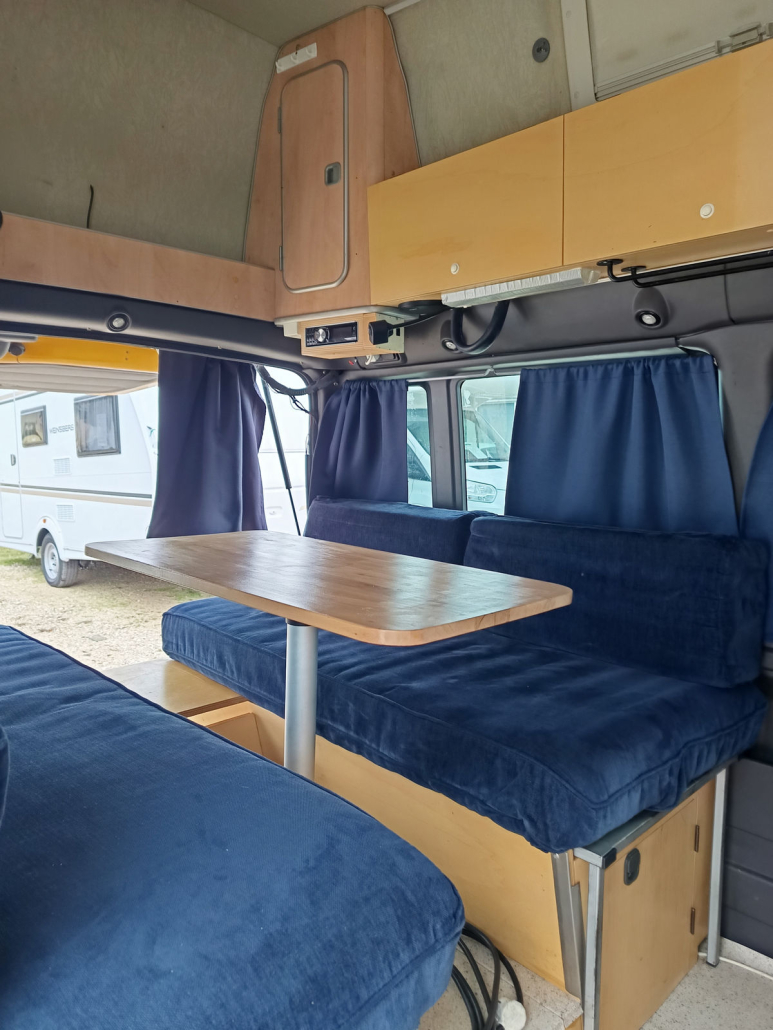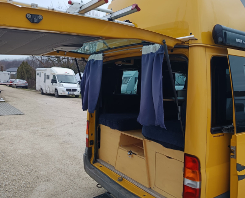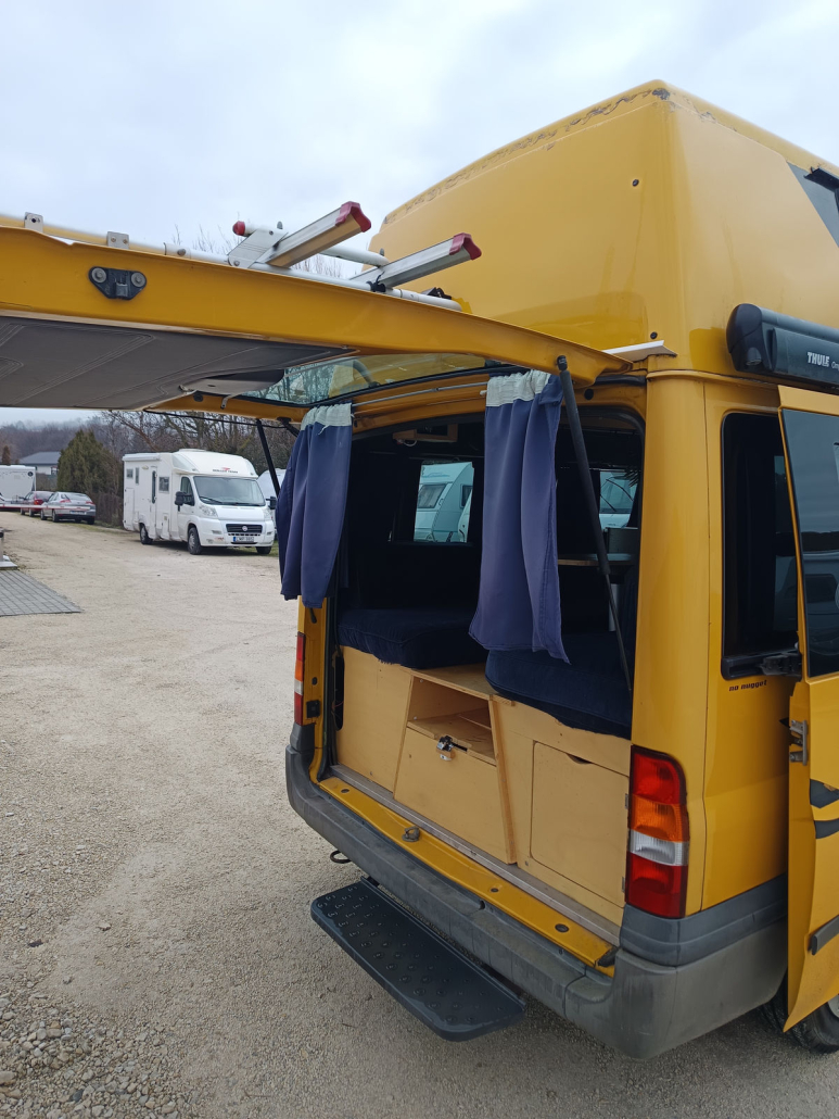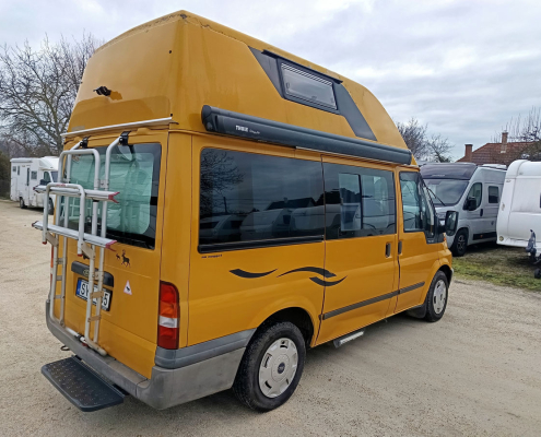 Felszereltsége: Thule árnyékoló, dízel állófűtés, tolatókamera, motorklíma, 2 rózsás gáztűzhely, 3 kg-os gázpalack, víztartály, hidegvizes rendszer, 12V-os hűtőszekrény, mobil WC, Fiamma 2-es kerékpártartó, ventillátoros tetőablak, fellépő, beépített széf